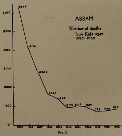 The following year, in 1925, the Assam government issued through its Health Bulletin a guidance drawn out by Major Morison (Director of Public Health, Assam) that treatment of all kala-azar patients be carried out using urea stibamine. It had detailed instructions on the dosing, preparation of the injectable solution, equipment and sterilisation requirements. In his concluding remarks, Major Morison said: “We find that 185,054 patients suffering from the disease have been treated, of which 166,545 would have undoubtedly died without proper treatment. The benefit conferred in Assam by this campaign against the disease can be estimated when it is realized that the treatment has converted the death rate of 90 percent into a recovery rate of the same percentage. We have good reasons to hope that we shall one day be successful in stamping the disease out of Assam.”