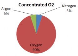 Many applications will require a higher percentage than the 19%. That's where Concentrated Oxygen fills the need. Concentrated Oxygen refers to oxygen which is a minimum of 90% pure with moisture removed to a -100 deg F dew-point. It can be produced from an oxygen concentrator or delivered in a pressurized cylinder bottle.