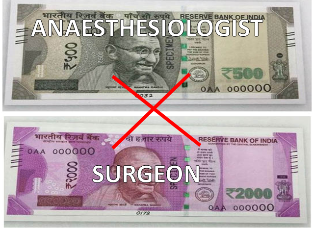 The Anesthesiologists are exploited across the country by most of the surgeons. They are paid peanuts and at times the money collected at smaller centres from the patients for the behoshiwala doctors are not passed to them. Honestly I have seen it in my own eyes. Completely dependent on the surgeon as in large parts of the country this specialty is largely unorganized and not competent to fight for their rights. Though there are wonderful pairs of Surgeons &Anesthesiologists working together in harmony and peace ,such numbers are far and few.