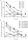 Experiments 3 and 4 rendered more precisely the clear dependency of the after-effect on stimulation duration (Fig. 3A), which was varied between 1 and 5 min, and intensity (Fig. 3B), which was modulated between 0.2 and 1 mA.