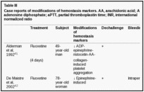 caption a8Case reports of modifications of hemostasis markers. AA, arachidonic acid; ADP, adenosine diphosphate; aPTT, partial thromboplastin time; INR, international normalized ratio