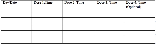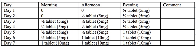 A titration chart, such as this one in the Patient Starter Pack is useful to keep a track of the dosage regime. Here’s what it looks like: