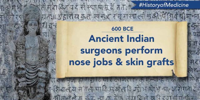 During the 6th Century BCE, an Indian physician named Sushruta – widely regarded in India as the ‘father of surgery’ – wrote one of the world’s earliest works on medicine and surgery. The Sushruta Samhita documented the etiology of more than 1,100 diseases, the use of hundreds of medicinal plants, and instructions for performing scores of surgical procedures – including three types of skin grafts and reconstruction of the nose.