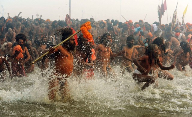 Naga sadhus carrying spears at shahi snan, Kumbh (File photo)