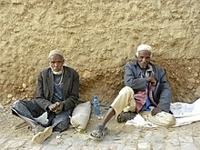 The traditional form of khat chewing in Yemen involves only male users; khat chewing by females is less formal and less frequent. Researchers estimate about 70–80% of Yemenis between 16 and 50 years old chew khat, at least on occasion. Approximately 60-90% of male and 35% of female Yemenis chew khat daily.[36][20] Prior to Yemeni unification in 1990, khat chewing was largely confined to the north-west mountains of the country, where khat grows.[20] Yemenis spend an estimated 14.6 million man-hours per day chewing khat. Researchers have also estimated that families spend about 17% of their income on khat.[19]