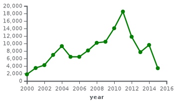 One reason for khat being cultivated in Yemen so widely is the high income it provides for farmers. Some studies done in 2001 estimated that the income from cultivating khat was about 2.5 million Yemeni rials per hectare, while fruits brought only 0.57 million rials per hectare. Between 1970 and 2000, the area on which khat was cultivated was estimated to have grown from 8,000 to 103,000 hectares.[19] In 2000, according to a World Bank estimate, khat accounted for 30% of Yemen’s economy.[20]
