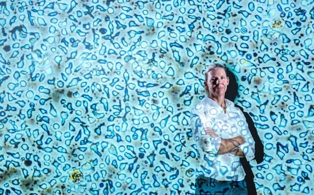 Judy Perkins is surrounded by white blood cells known as tumor-infiltrating lymphocytes, or TILs, which cured her breast cancer (see CT scans below). When Perkins was first diagnosed, she had her left breast removed, but the cancer returned. Despite chemotherapy, hormonal treatments, and targeted therapies, a new tumor grew in her chest. When the cancer spread, she was given months to live. But in an experimental treatment devised by Steven Rosenberg at the National Cancer Institute, Perkins was infused with 82 billion of her own TILs, which she calls her “army.”