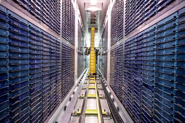 In freezer trays cooled to -112°F, the UK Biobank stores blood, urine, and saliva samples from more than 500,000 people. A robot retrieves specimens that scientists use to find links between genetic variants and disease.