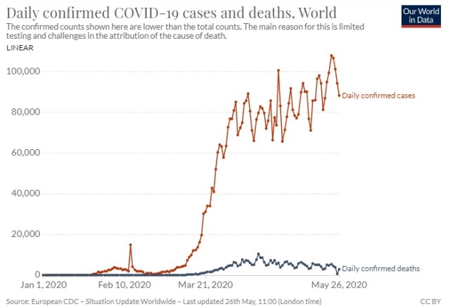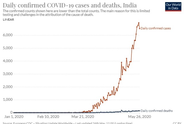 But in the epidemiological trend at the global as well as the Indian scene, there are definite signs of reduction in virulence. Although the infection is growing, the death rate is consistently reducing with time. Look at the patterns. From mid-April, although the total number of new cases per day has been increasing, the total reported deaths per day is decreasing.