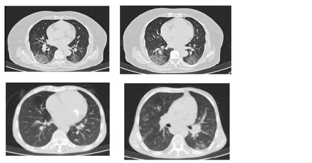 The most common CT findings in COVID-19 are ground glass opacities and consolidation noticed in 95% and 72% of the patients respectively. Ground glass opacities have been considered to be the result of serous inflammatory exudative reaction from lung alveoli. Copious amounts of such inflammatory exudation ultimately forms consolidation. Studies have reported prominent bilateral consolidation on CT scans in ICU patients. Ground-glass opacities and little areas of consolidations are seen in patients with mild symptoms of the infection not mounting to the admission.