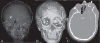 B].[12] This sign is seen in sphenoid wing dysplasia in neurofibromatosis type 1 (NF1). In addition to the absence of the innominate line, there is egg-shaped enlargement of the anterior orbital rim, a bony defect in the posterior orbit, and anteroposterior enlargement of the middle cranial fossa.[13] Sphenoid dysplasia is a distinctive bone lesion seen in 5–10% of cases of NF1[12] and is used as one of the National Institute of Health (NIH) diagnostic criteria for NF1. Sphenoid wing dysplasia associated with pulsatile exophthalmos, expansion of the temporal fossa, and herniation of the temporal lobe into the orbit have been described as the ‘cranio-orbital-temporal’ subtype of NF1 [Figure 11C].[12] The exact etiology of the sphenoid dysplasia is not clear. It could be part of the syndrome, with primary dysplasia as one of the components, or the changes in the sphenoid bone could be secondary to the presence of an orbital plexiform neurofibroma or other masses that are commonly seen in association with sphenoid dysplasia.[13]