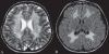 Tigroid pattern. Axial T2W image of the brain in a child with metachromatic leukodystrophy shows symmetric, increased signal intensity of the white matter, with sparing of the subcortical U fibers. Linear low signal intensity areas radiating away from …