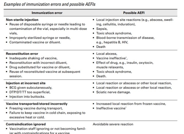 • Immunization errors can also affect many vials, for example, freezing vaccine during transport may result in an increase in local reactions.