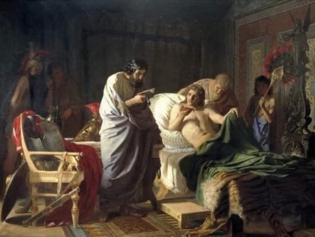 333 BCE. Alexander’s army was passing through Cicilia (Modern day Turkey). Alexander the Great decided to take a bath in the icy water of the river Cidnus (Now called ‘Berdan’). The following day he developed fever, and gradually it led to febrile convulsions. The royal physicians accompanying the king were very scared and reluctant to treat him as they knew the consequence of any glitch in the treatment could cost their life. A physician named Philip from Acarnania was bold enough and came forward to treat Alexander. He prepared a medicinal draught for the seriously ill king. When Alexander was about to drink this potion, a letter arrived from Parmenio, one of his military generals. The letter accused that Persian king Darius III bribed Philip to poison Alexander. Alexander read the letter, and with the paper still in his hand, swallowed the cup of medicine. After finishing the medicine, he passed the letter to Philip. No, Alexander the Great did not die of poisoning; he recovered within a short time and led his army to conquer the world.
