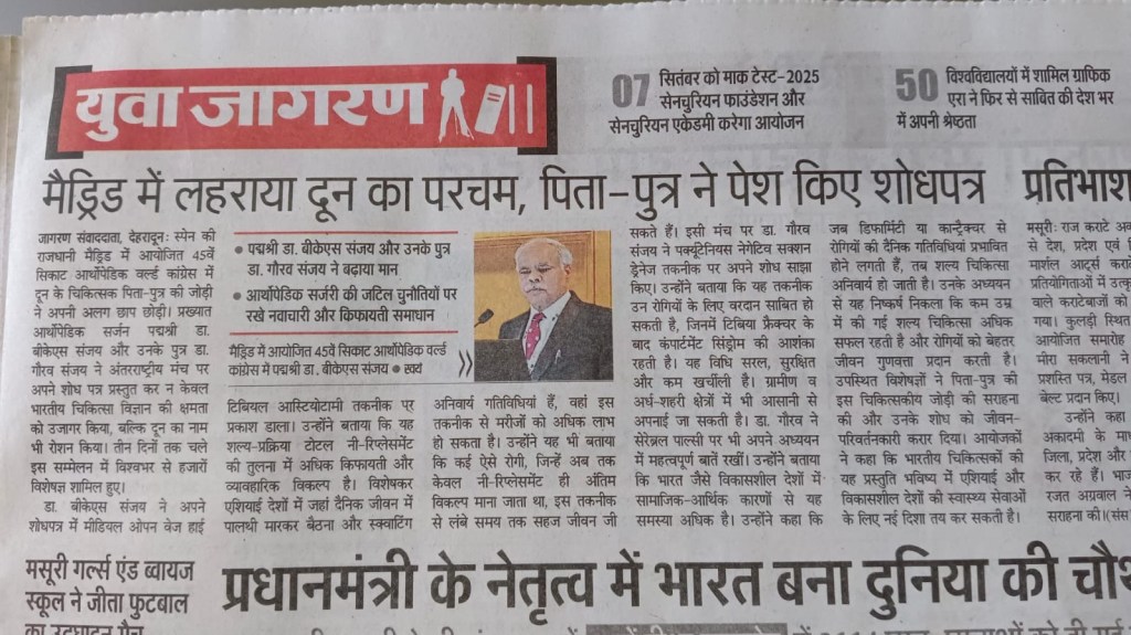 His son, Dr. Gaurav Sanjay, also an orthopedic surgeon, recalls a moment that captures his father’s spirit. “I was a kid, watching Dad treat a patient who couldn’t pay. He said, ‘Gaurav, never let money decide who gets care.’ That stuck with me.” Dr. Sanjay’s social work earned him a place in the India and International Book of Records for his humanitarian efforts, alongside accolades like the Uttarakhand Ratna, National Healthcare Excellence Award, and the prestigious Padma Shri in 2021.