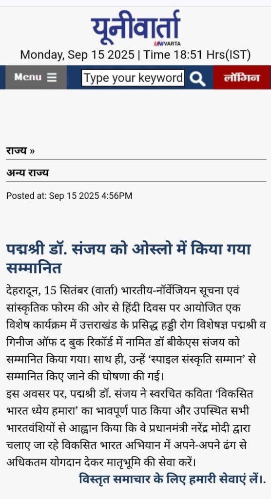 But Dr. Sanjay’s story isn’t just about scalpels and operating theaters. He’s a poet, a writer, a social worker—and a man with a mission to serve. As the founding president of the Uttarakhand branch of the Indian Orthopaedic Association, he brought cutting-edge orthopedic care to a region that desperately needed it. He organized free medical camps, delivered public health lectures, and wrote columns in The Pioneer to raise awareness about bone health. “Health is a right, not a privilege,” he’d argue passionately, his voice resonating in community halls.
