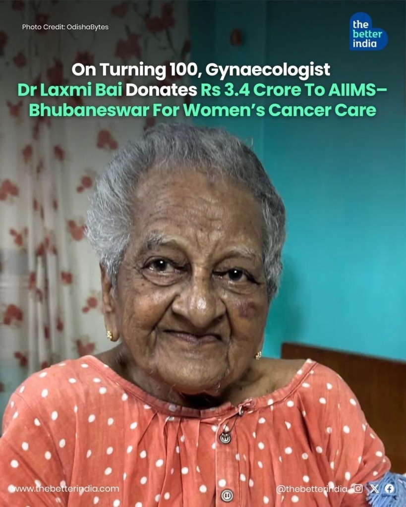 At nearly 100, Dr K Laxmi Bai gifted her entire life’s savings, Rs 3.4 crore, to AIIMS Bhubaneswar to build a gynaecological oncology unit for women battling cancer across Odisha and beyond.