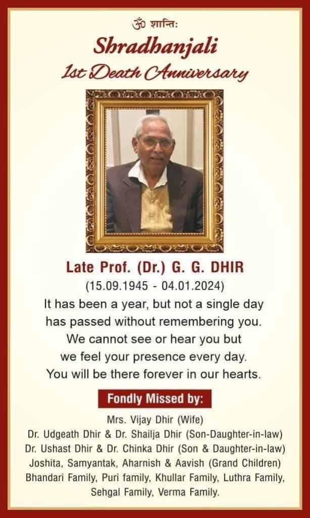 In an era when dermatologists were a rare breed in India, Dr. G.G. Dhir stood out as one of the pioneering specialists in skin diseases. Born on fifteenth September 1945 in Mogha Punjab, he was a proud Punjabi through and through, he spoke English with a rich, unmistakable Punjabi accent that somehow made even the most technical medical terms sound warm and approachable.